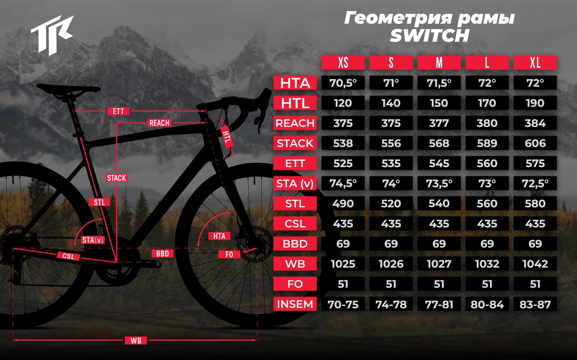 ТR Gravel Pro 31.8mm, S=420mm, М/L/ХL=440mm |